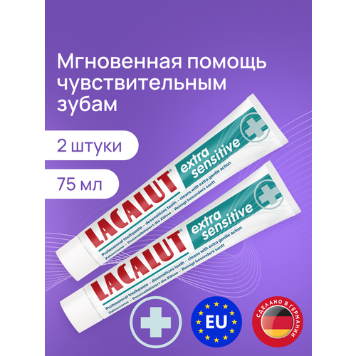 НАЙТИ ВЫГОДНЕЕ - Зубная паста LACALUT extra sensitive, для чувствительных зубов, Германия, спайка из 2 штук по 75 ml
