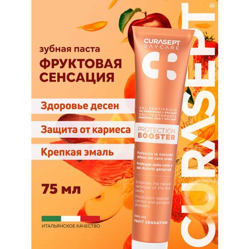 НАЙТИ ВЫГОДНЕЕ - Зубная паста CURASEPT DAYCARE BOOSTER Fruit Sensation вкус Фруктовая Сенсация с кальцием, Курасепт, 75 мл, Италия