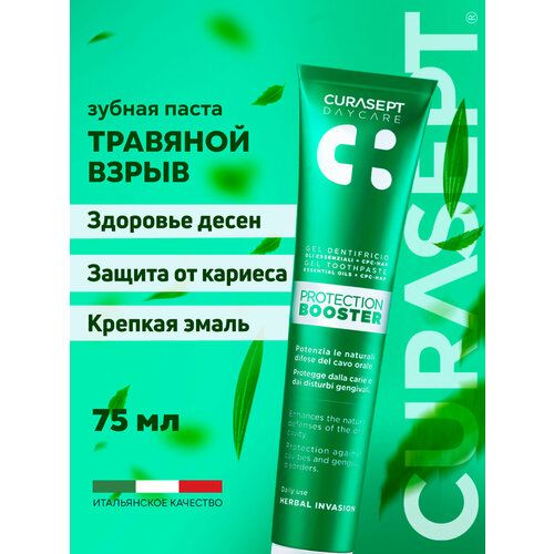 НАЙТИ ВЫГОДНЕЕ - Зубная паста CURASEPT DAYCARE BOOSTER Herbal Invasion вкус Травяной Взрыв с кальцием, Курасепт, 75 мл, Италия