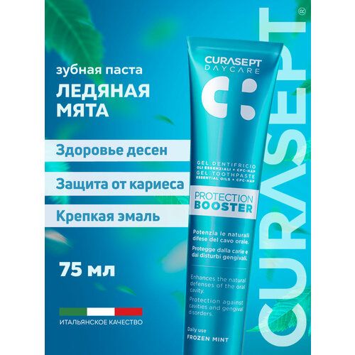 НАЙТИ ВЫГОДНЕЕ - Зубная паста CURASEPT DAYCARE BOOSTER Frozen Mint со вкусом Ледяной Мяты с кальцием, Курасепт, 75 мл, Италия
