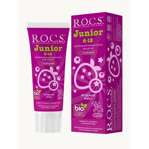 Зубная паста R.O.C.S. из серии Junior предназначена для детей в возрасте от 6 до 12 лет. Вариант "Ягодный Микс" предлагает вкус сочных ягод, который понравится вашему ребенку. Каждая упаковка содержит две тубы по 74 г.