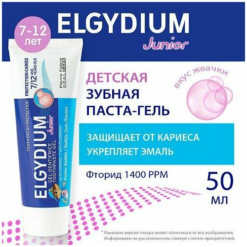 НАЙТИ ВЫГОДНЕЕ - Зубная паста-гель для взрослых и детей от 7 лет Elgydium Защита от кариеса Junior aroma Bubble 50 мл
