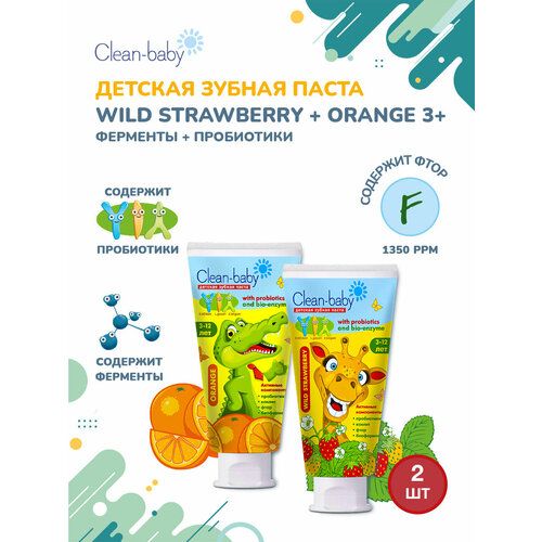 Набор детские зубные пасты Clean-baby с пробиотиками и ферментами от 3-12 лет