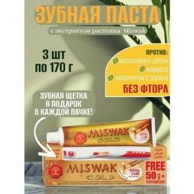 НАЙТИ ВЫГОДНЕЕ - Зубная паста Мисвак Голд 3 шт. по 170 г + зубная щетка (Dabur Miswak Gold)