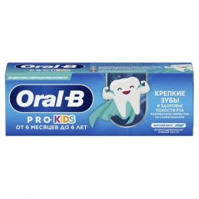 Зубная паста Oral-B Pro Kids предназначена для использования от 6 месяцев до 6 лет. Несмотря на довольно высокое содержание фторида натрия, паста деликатна по отношению к нежной эмали молочных зубов. Oral-B Pro Kids мягко очищает зубы от налета и нежно массирует десны. Ее ежедневное применение снижает риск возникновения кариеса, защищает зубы от негативного воздействия сахара и кислот.