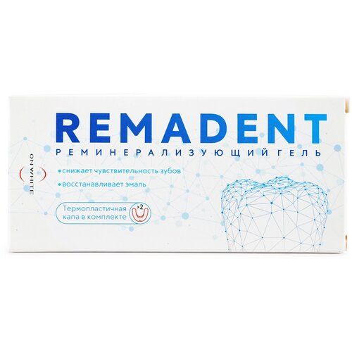 Слишком чувствительные зубы? Часто возникает кариес? Хочется укрепить эмаль? Хотите закрепить результат после отбеливания? Уход за зубами не дает нужного результата? Бренд ON WHITE создал для вас REMADENT - идеальный реминерализующий гель для зубов тройного действия: активированный гидроксиапатит – заполняет микротрещины эмали и увеличивает её твёрдость в 10 раз; пребиотик аргинин – на 70% снижает риск возникновения кариеса; нитрат калия – нивелирует чувствительность зубов. В течение десяти дней уделяйте по 5-10 минут своим зубам и после завершения курса вы поймёте, как это круто – жить без ноющей боли, не думать о температуре еды и напитков, не переживать из-за необходимости частых походов к стоматологу. Вы можете применять REMADENT как самостоятельное средство, просто нанесите гель (примерно 3 мл.) на зубную щетку и распределите его по поверхности зубов. Или, возможно, вы захотите использовать его со специальной термопластичной капой, для усиления эффекта - нанесите гель (примерно 3 мл.) на капу и поместите её в рот, убедившись, что гель равномерно распределился по зубам. REMADENT не нужно смывать, после применения рекомендуем не есть и не пить 30 минут. Гель подходит для чувствительных зубов. В комплект входит: гель (30 мл.) + термопластичная капа. Природная чувствительность или хрупкость эмали, отбеливание или снятие ортодонтических конструкций, что бы не случилось с вашими зубами, С REMADENTвы забудете об этих проблемах С помощью ручки, опустите заготовку для изготовления капы в воду температурой 80оС на 15-20 секунд. Достаньте заготовку, убедитесь, что она не слишком горячая и наденьте ее на нижний ряд зубов. Растяните пальцами заготовку на зубах с внешней/внутренней стороны, плотно прикусите и подождите 10-15 сек, пока капа не примет форму вашего зубного ряда. Для фиксации полученной формы капу следует промыть холодной водой. Если капа сформирована правильно и плотно прилегает к зубам – она не будет спадать и мешать во время сна. Вы всегда можете скорректировать форму капы, опустив ее в горячую воду и повторив всю последовательность действий заново. После сеанса аппликации рекомендуем отрезать ручку заготовки, промыть капу водой и хранить в сухом прохладном месте. Уход за полостью рта стал гораздо эффективнее