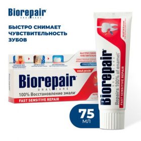 Зубная паста Biorepair Fast Sensitive Repair, для чувствительных зубов, 75 мл, 75 г 100498159759