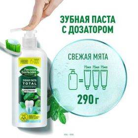 Зубная паста отбеливающая с дозатором Лесной Бальзам Свежая Мята Total Комплекс Отбеливание для всей семьи 290 мл