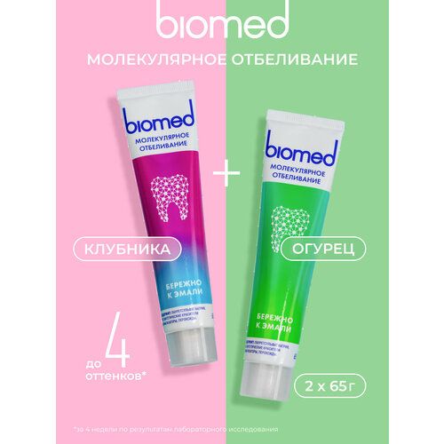 НАЙТИ ВЫГОДНЕЕ - Зубные пасты «BIOMED HEALTHYWHITE Отбеливание и восстановление эмали» Клубника + Свежий огурец и мята, 2шт х 65 г