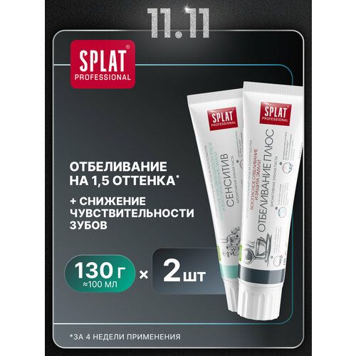 НАЙТИ ВЫГОДНЕЕ - Зубная паста SPLAT Сенситив для восстановления эмали + зубная паста SPLAT Отбеливание Плюс укрепление эмали, 2х100мл