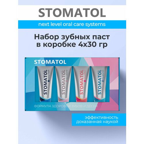 НАЙТИ ВЫГОДНЕЕ - Набор зубных паст STOMATOL в коробке 4 шт по 30 гр Extra fresh, Microbiome, Ultra effect, Hyaluron