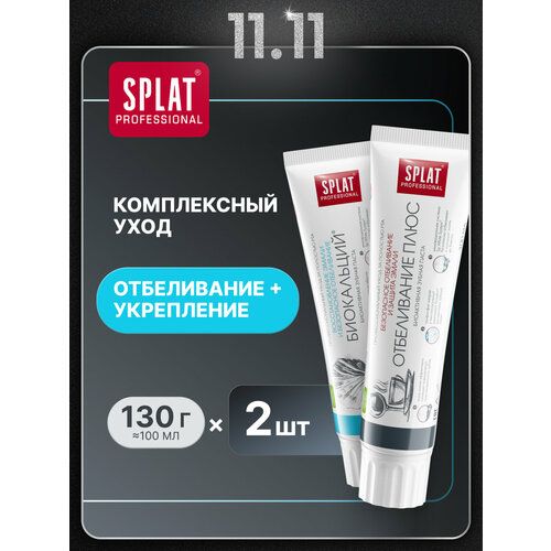 НАЙТИ ВЫГОДНЕЕ - Зубная паста SPLAT Professional Биокальций + Отбеливание Плюс набор, укрепление эмали, отбеливающая, 2 шт. по 100 мл