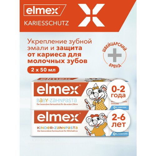 НАЙТИ ВЫГОДНЕЕ - Детская зубная паста Elmex Children's 0-2 лет, 50 мл + Children's 2-6 лет, 50 мл