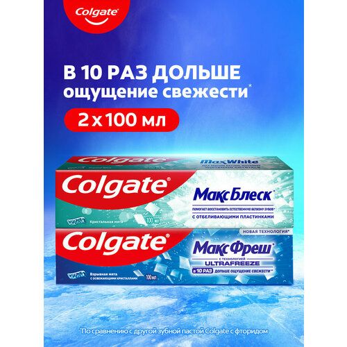 НАЙТИ ВЫГОДНЕЕ - Зубная паста Colgate Макс Блеск, 100 мл + Макс Фреш Взрывная Мята, 100 мл