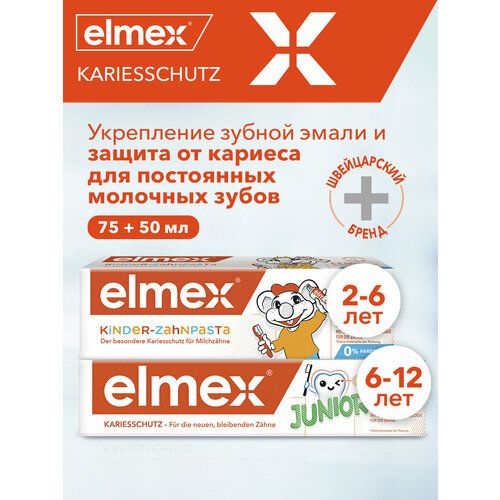 НАЙТИ ВЫГОДНЕЕ - Детская зубная паста Elmex Junior от 6 до 12 лет, 75 мл + Elmex Children's от 2 до 6 лет, 50 мл
