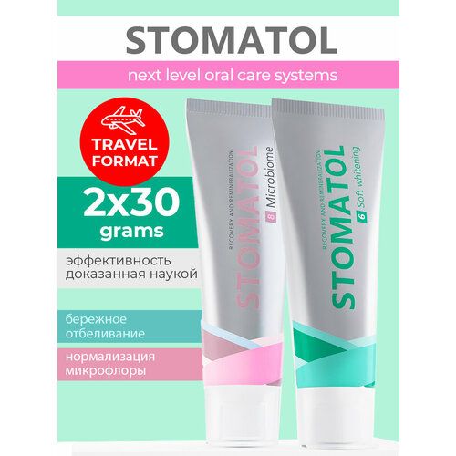 НАЙТИ ВЫГОДНЕЕ - Зубная паста STOMATOL Бережное отбеливание 30 гр + Восстановление микрофлоры полости рта 30 гр