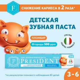 НАЙТИ ВЫГОДНЕЕ - Зубная паста детская PRESIDENT Пломбир, от 3 до 6 лет с фтором, RDA 50, 70г