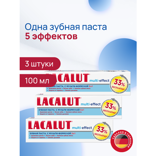 НАЙТИ ВЫГОДНЕЕ - Зубная паста Lacalut Multi-Effect, антибактериальный эффект, мятный вкус, 100 мл, спайка из 3 штук
