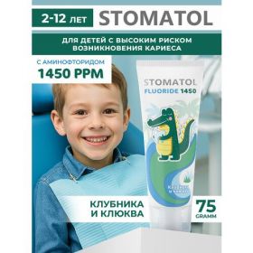 НАЙТИ ВЫГОДНЕЕ - Детская зубная паста STOMATOL 2-12 лет Fluoride 1450 ppm от кариеса с повышенным содержанием фтора 75г