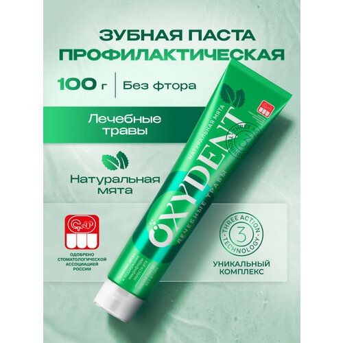 НАЙТИ ВЫГОДНЕЕ - Зубная паста OXYDENT Лечебные Травы, реминерализирующая, без фтора, безопасно при глотании, 100г