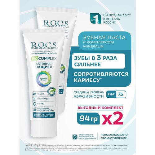 НАЙТИ ВЫГОДНЕЕ - Зубная паста R.O.C.S. Biocomplex активная защита, 75 мл, 94 г, 2 шт.