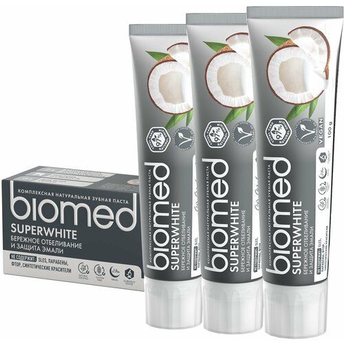 НАЙТИ ВЫГОДНЕЕ - Зубная паста Biomed SuperWhite кокос, для чувствительной эмали, отбеливающая, 100 г, 3 шт