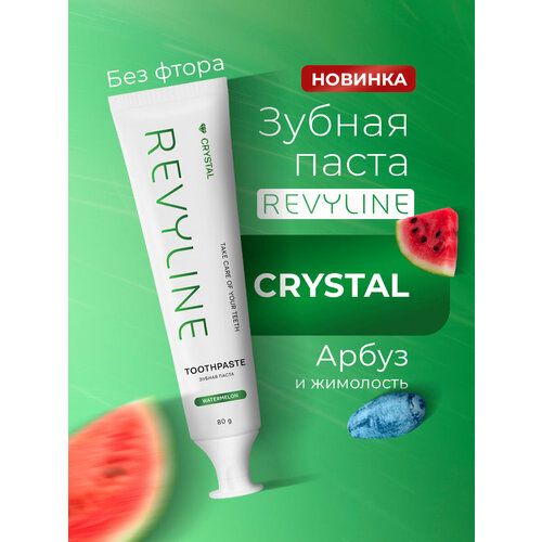 НАЙТИ ВЫГОДНЕЕ - Зубная паста Revyline Crystal энзимная, для всей семьи, RDA 70, без фтора, 80 г, арбуз и жимолость