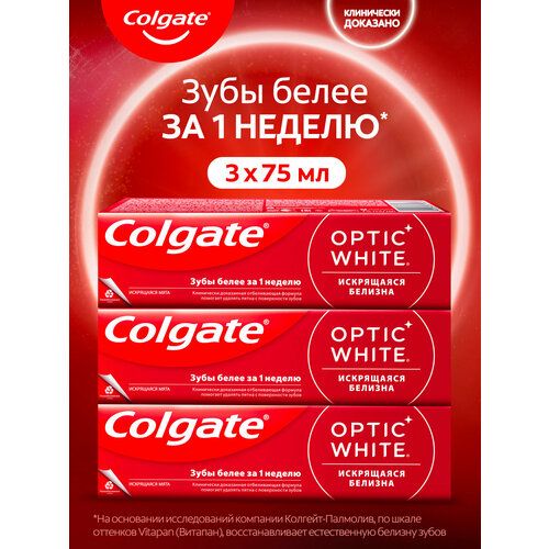 НАЙТИ ВЫГОДНЕЕ - Зубная паста Colgate Optic White Искрящаяся мята отбеливающая, 75 мл (3 шт)