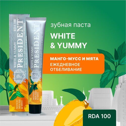 Зубная паста PRESIDENT White & Yummy Манго-мусс с мятой, 75 г 663912094