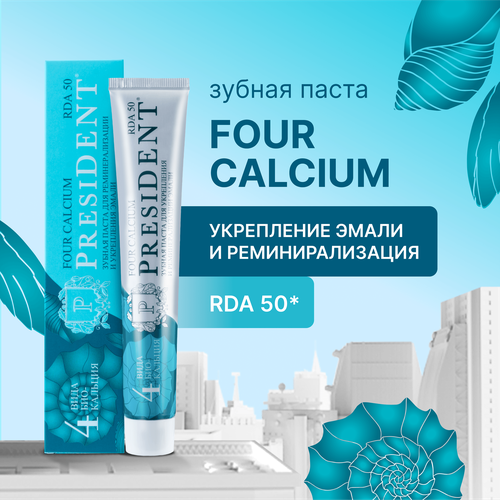 Зубная паста PRESIDENT Four Calcium Укрепление эмали и реминерализация, 75 г