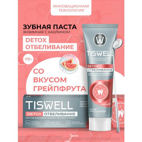 TISWELL Зубная паста отбеливающая с фтором и каолином, энзимная от камня и темного налета, со вкусом грейпфрута, 110 гр