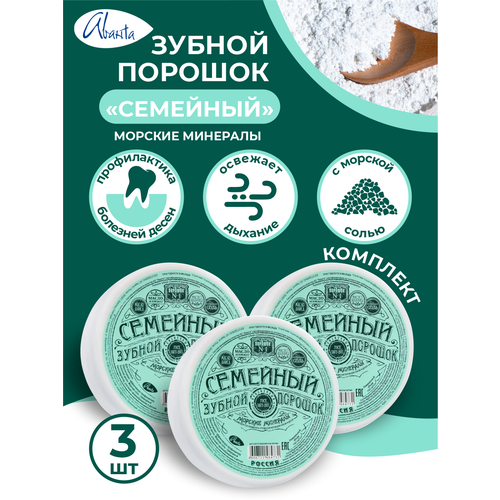 НАЙТИ ВЫГОДНЕЕ - Порошок зубной семейный (комплект из 3-х шт.), с морскими минералами, (140г 1шайба) Аванта