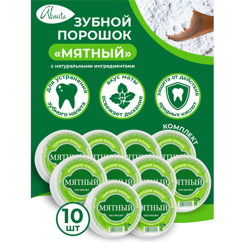 НАЙТИ ВЫГОДНЕЕ - Зубной порошок Аванта Мятный с натуральными ингредиентами х 10 шт.