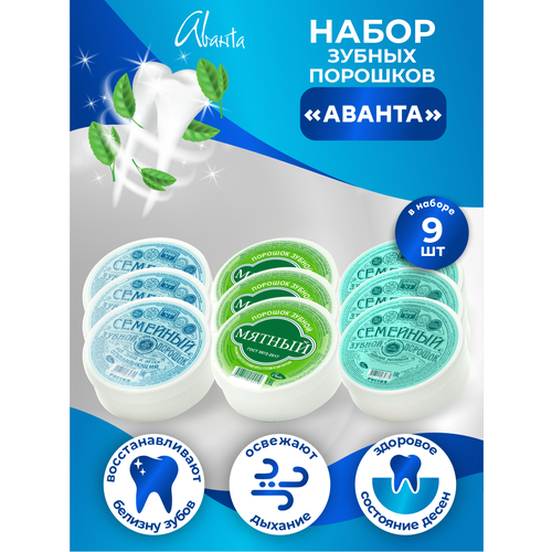 НАЙТИ ВЫГОДНЕЕ - Набор Зубных порошков Аванта Семейный Отбеливающий 3шт+ Семейный 3шт+ Мятный 3шт