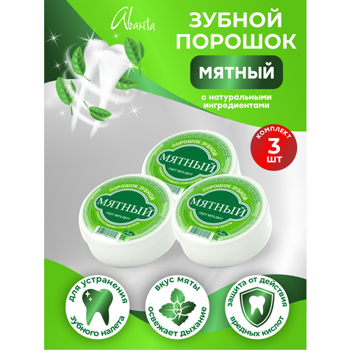 НАЙТИ ВЫГОДНЕЕ - Зубной порошок Аванта Мятный с натуральными ингредиентами х 3 шт.