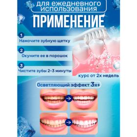 Давно ищете и не можете найти идеальные средства для чистки зубов, не повреждающие эмаль и десна? Мечтаете о красивой белоснежной улыбке без посещения стоматолога и проведения дорогостоящих процедур чистки зубной эмали от желтых пятен, налета и зубных камней? Специалисты Sadoer решили проблему отбеливания и ухода за полостью рта за вас Отбеливающий безопасный зубной порошок, осветляющий пятна, отлично удаляет камни и делает зубы белыми, словно жемчуг. Верните блеск и здоровье зубам используя отбеливатель в баночке, который бережно заботится об эмали и не царапает зубы и десна, поскольку имеет неабразивную формулу и деликатно очищает зубки. Порошковая зубная паста имеет натуральный состав, кальций карбонат избавит от зубного камня и создаст свежее дыхание. Отбеливающие мятные зубные порошки подходят для ухода за зубами всей семьи, а пенка, образующаяся при чистке обеспечит отбеливание желтизны зубов от кофе, табака и сигареты. Используйте в наборе зубные полоски, чтобы усилить чистящий эффект. Ваша smile неотразима. Средство хорошо очищает брекет-системы, протезы и пластинки и главное не царапает, поскольку имеет мелкодисперсную структуру. Отбеливающая китайская натуральная паста вернет вам белые зубы естественным образом, без использования химии, ксилита и вреда организму. Просто намочите зубную щетку, окуните щетку в порошок и чистите зубы 2-3 минуты, подходит для ежедневного использования. Оцените выраженный эффект через 2 недели. Порошок в банке предотвращает возникновение кариеса, пена глубоко очищает, проникает даже в труднодоступные места. Маленька компактная банка с пастой и бесценный вклад в здоровье ротовой полости. Попробуйте и оцените, жемчужная красота и ослепительная яркая улыбка в ваших руках.