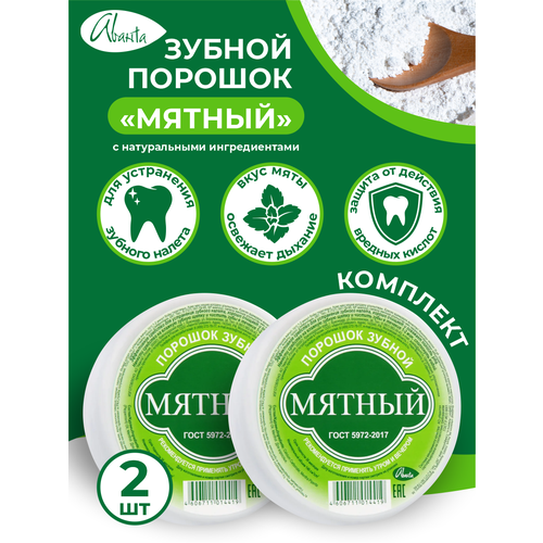 НАЙТИ ВЫГОДНЕЕ - Зубной порошок Аванта Мятный с натуральными ингредиентами х 2 шт.