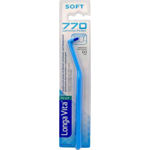 Артикул: 2079-475. Вес: 16 гр, Размер упаковки: 4.5 x 1 x 24 см, Температурное ограничение: Нет, Набор: Нет, Уровень жёсткости: Мягкая, Возраст: Для взрослых, Электрические: Нет. Монопучковая зубная щетка идеально подходит для чистки межзубных промежутков, придесневых зон и сложнодоступных участков. Многогранная форма ручки позволяет обеспечить правильное положение щетки. Мягкая щетина из нейлона не деформируется и не впитывает влагу, не травмирует эмаль и десны, 770 щетинок диаметром 0,1 мм создают густую поверхность для эффективной бережной чистки. Диаметр пучка 6 мм позволяет эффективно очищать десневой край. Longa vita идеальна для чистки труднодоступных мест, для ухода за брекетами, имлантами, коронками и ортопедическими конструкциями. Щетка подходит как взрослым, так и детям с 0 лет. Способ применения: возьмите монопучковую щетку вертикально, разместите щетку так, чтобы щетинки были вокруг линии десны. Передвигайте монопучок от одного зуба к другому вдоль линии десны мягкими штрихующими движениями. Чистите и внутреннюю поверхность и жевательную. После использования необходимо промыть щетку в теплой проточной воде.