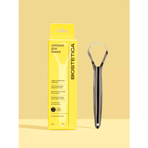 НАЙТИ ВЫГОДНЕЕ - Скребок для чистки языка Biostetica от налета и запаха из медицинской стали