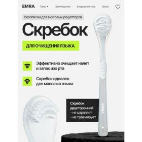 Щетка-скребок для языка от EMRA - это лучший помощник по обеспечению полной гигиены полости рта. На языке так же скапливается большое количество бактерий. Щетка для чистки языка устраняет налет, вызывающий неприятный запах изо рта, и надолго освежает дыхание.