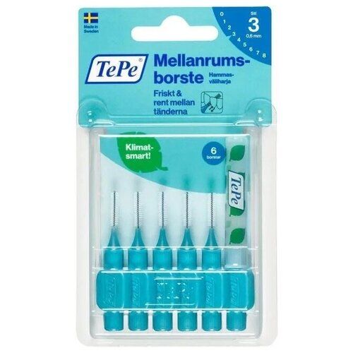 Межзубная щетка TePe, предназначенная для очистки промежутков между зубами, куда не может добраться обычная зубная щетка. Используйте ежедневно, чтобы сохранить десны и зубы здоровыми и свежими. Межзубную щетку можно использовать для очистки межзубных промежутков, имплантатов, коронок и мостов. Он также подходит для очистки вокруг брекетов и дуг во время ортодонтического лечения. TePe Interdental Brush Original выпускается в 9 размерах с цветовой кодировкой, которые подходят как для узких, так и для широких промежутков — размеры ISO 0–8. Межзубные ершики разработаны в сотрудничестве с экспертами в области стоматологии, чтобы обеспечить высочайшее качество каждой детали. Ежедневное использование может помочь удалить до 40% больше зубного налета, чем обычная чистка зубов. Эффективное удаление зубного налета предотвращает воспаление десен, кариес и неприятный запах изо рта. Заменив ископаемое сырье материалом растительного происхождения в системе массового баланса,