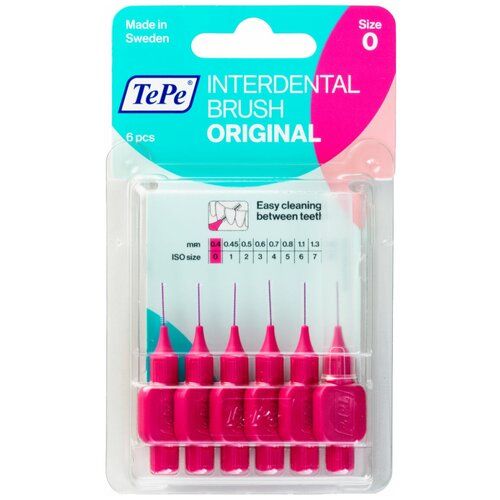 Межзубные ершики TePe Original предназначены для очистки межзубных промежутков от налета и остатков пищи. Могут использоваться для очистки брекет-систем, имплантов, коронок и мостов. Диаметр стержня ершиков TePe Original Pink- 0,4 мм. Рекомендованы для межзубных промежутков размером 0,6 мм.