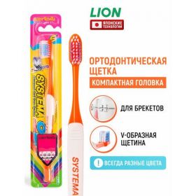 НАЙТИ ВЫГОДНЕЕ - LION Зубная щетка ортодонтическая средней жесткости Systema Small Head с V-образной щетиной, для зубов и брекетов, для взрослых, в цветовом ассортименте / японские технологии
