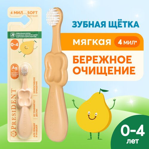 НАЙТИ ВЫГОДНЕЕ - Детская зубная щетка PRESIDENT 0-4 лет Мягкая, желтый