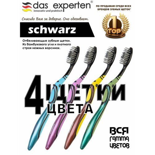 НАЙТИ ВЫГОДНЕЕ - Зубная щетка DAS EXPERTEN SCHWARZ, мягкая, с бамбуковым углем, 4шт