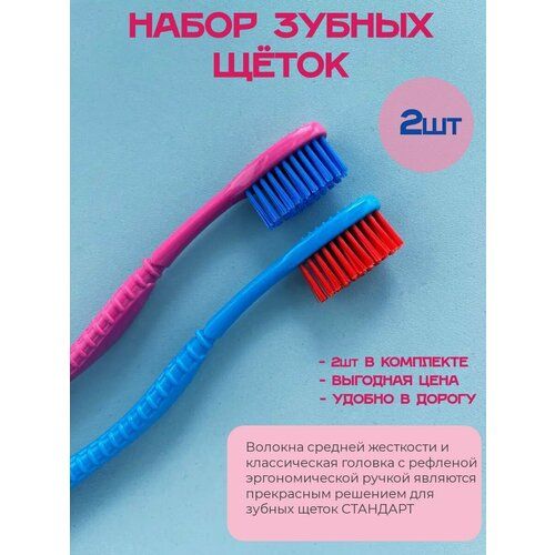 НАЙТИ ВЫГОДНЕЕ - Набор зубных щеток, средней жесткости, голубая и розовая 2 шт