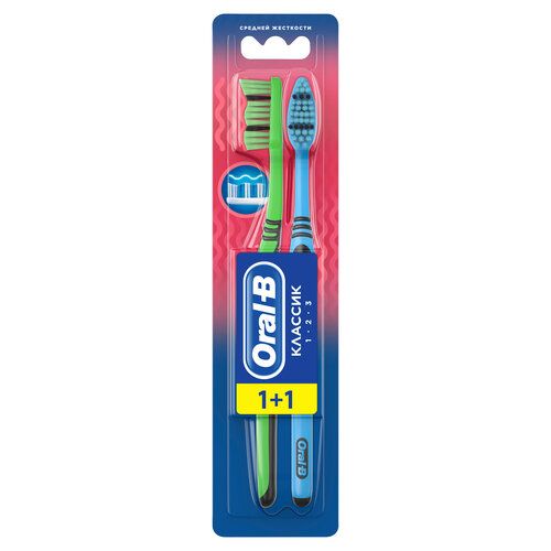 НАЙТИ ВЫГОДНЕЕ - Зубная щетка Oral-B 3-effect Классик, средней жесткости, синий/зеленый, 2 шт.