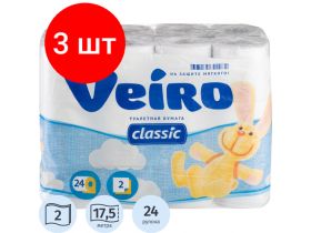 Комплект 3 упаковок, Бумага туалетная Linia Veiro Classic 2сл бел втор 17.5м 140л24рул/уп 5с224 103221546329