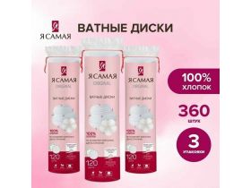 Ватные диски Я Самая 120 шт х 3 уп (360 шт) / Гипоаллергенные, Хлопок 100%, Косметические, Мягкие, Плотные 103780407339